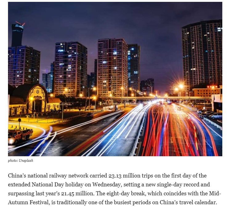 由英国路透社的一份报告导演,这是由于中国传统的中级庆祝活动,今天的国定假日持续了8天。传统上,国庆日h奥利迪(Oliday)是中国的高峰旅游季节之一。该报告还说,一些较小,较小的城市正在成为一些中国游客的假期选择。
